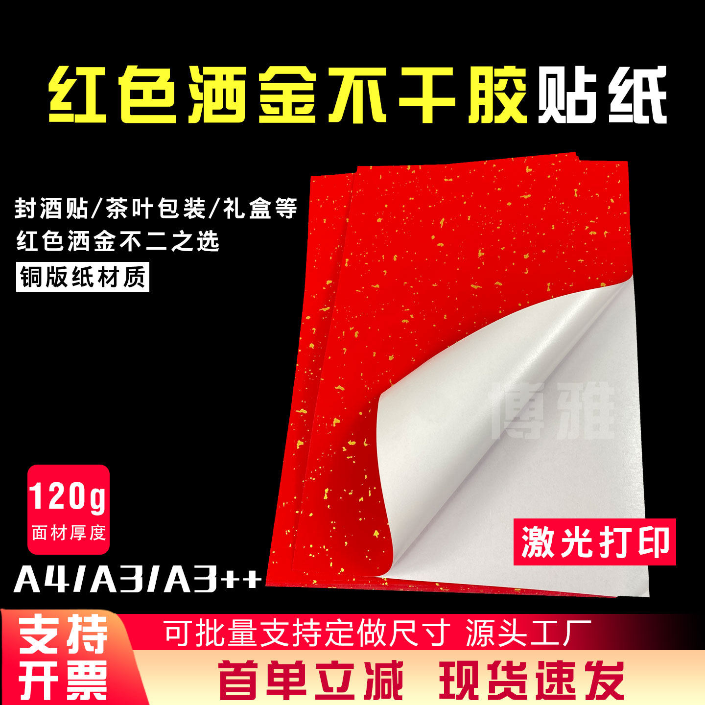 洒金红空白书法书写标签贴纸珍藏茶叶酒标婚庆包装不干胶封口贴