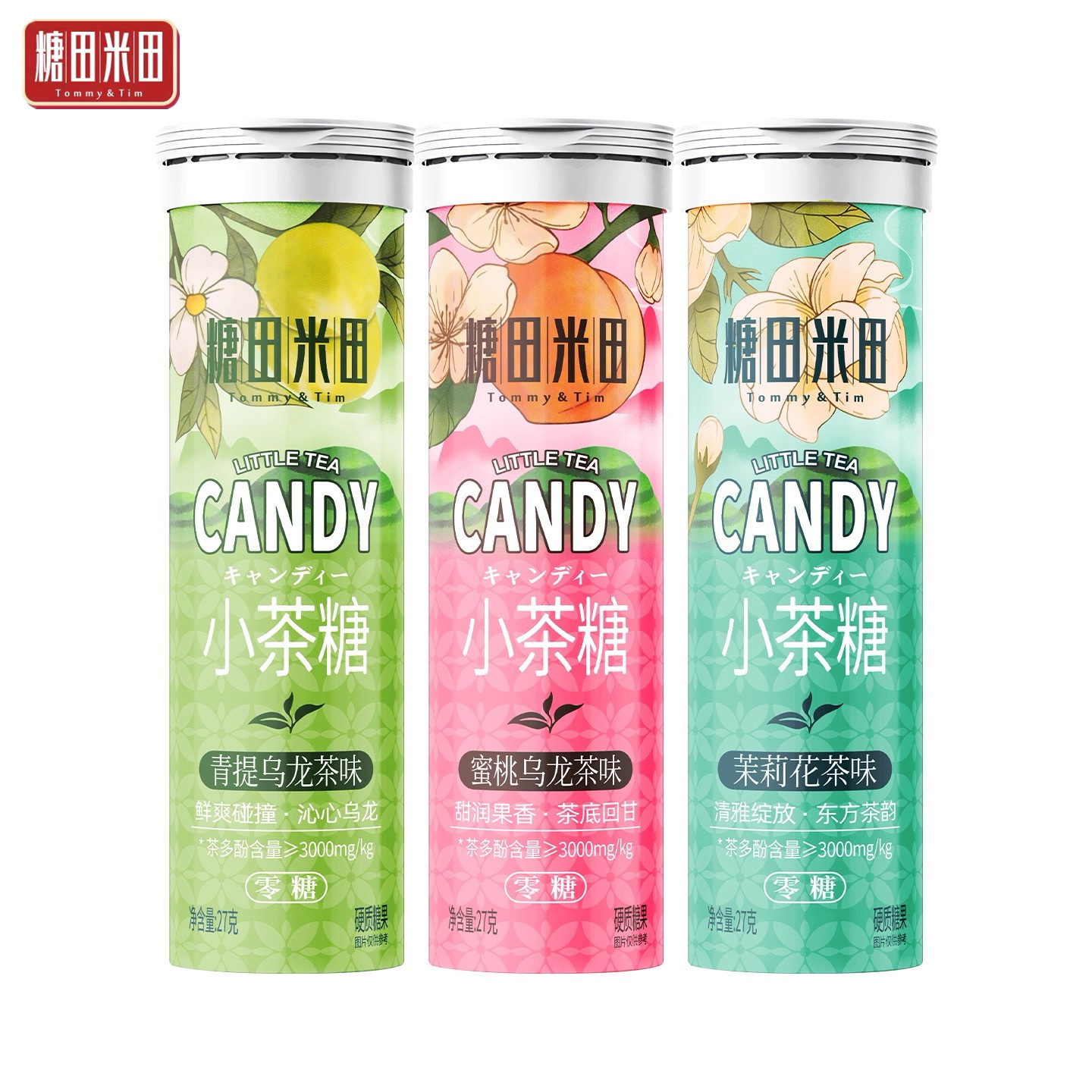 糖田米田小茶糖瓶装0糖茶叶含片清凉清口茶多酚草本润喉水果味糖