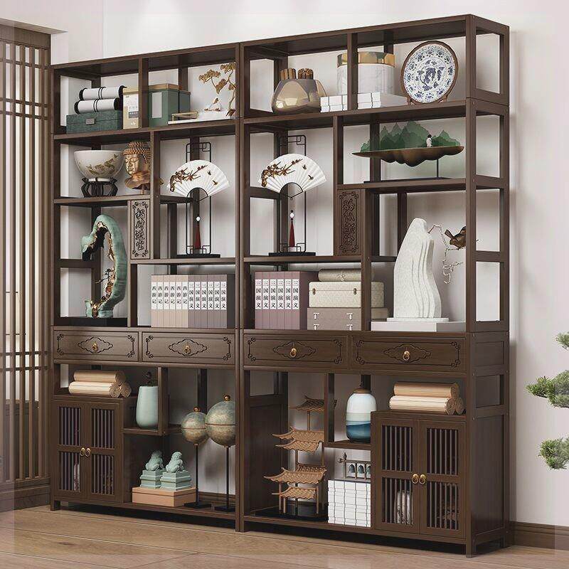 新中式博古架摆件轻奢高档客厅玄关柜茶叶置物架展示架茶具收纳架