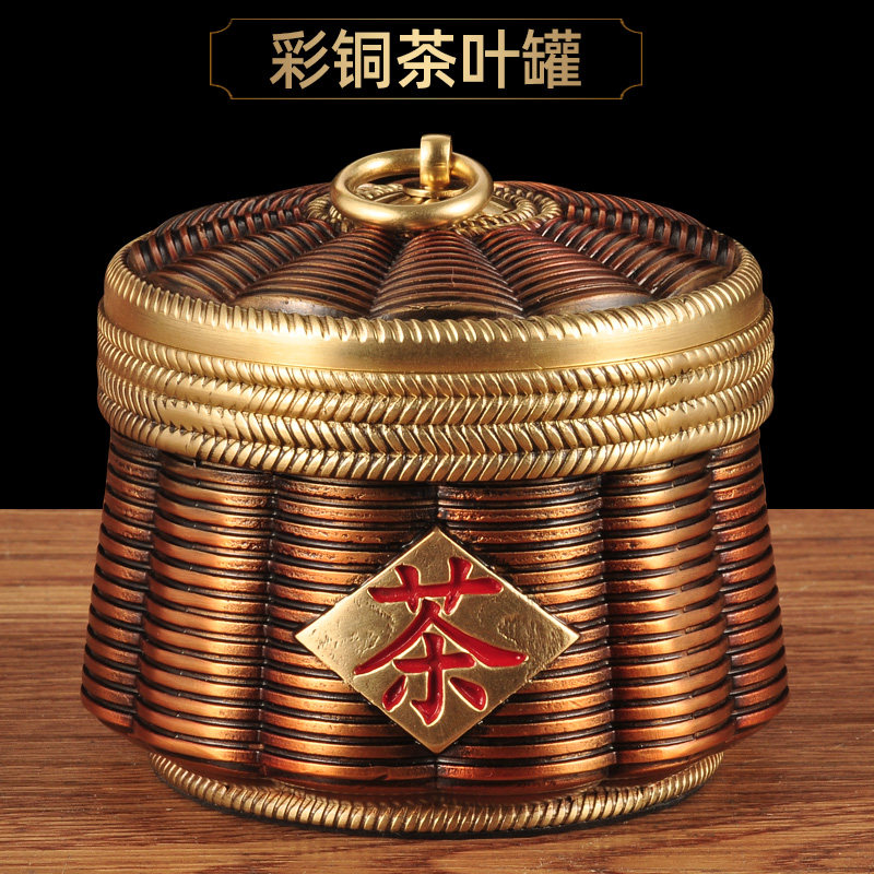 彩铜茶叶罐摆件储存罐茶罐子密封罐家居客厅茶几装饰品商务礼品