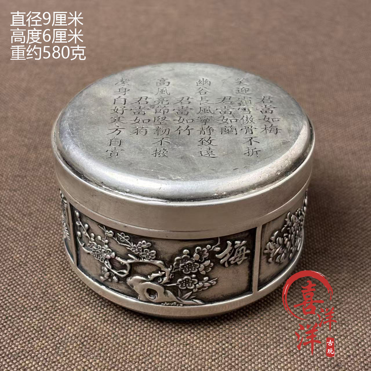 古董文玩老银藏银梅兰竹菊茶叶罐带盖烟灰缸墨盒印尼盒储物罐子
