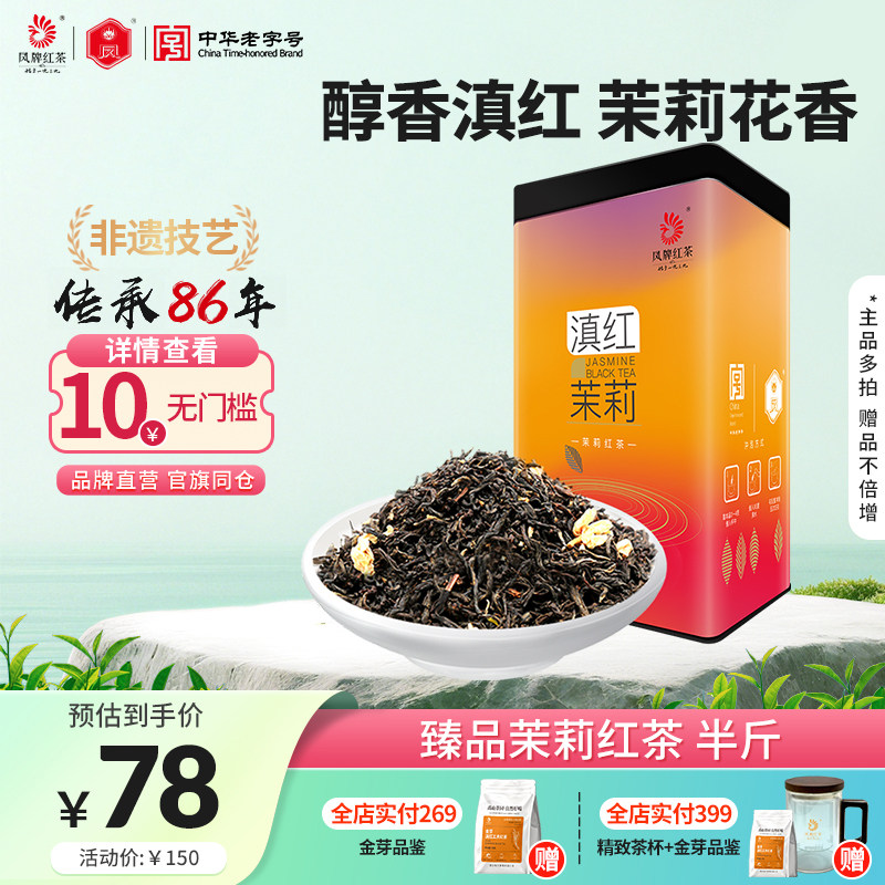 凤牌红茶云南茉莉红茶茶叶正宗滇红养胃茉莉花香浓香250g半斤送礼