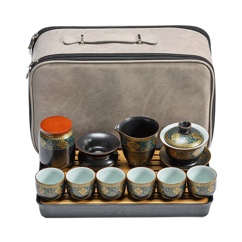 旅行陶瓷功夫茶具套装简易家用便携式包户外收纳泡茶壶盖碗茶叶罐