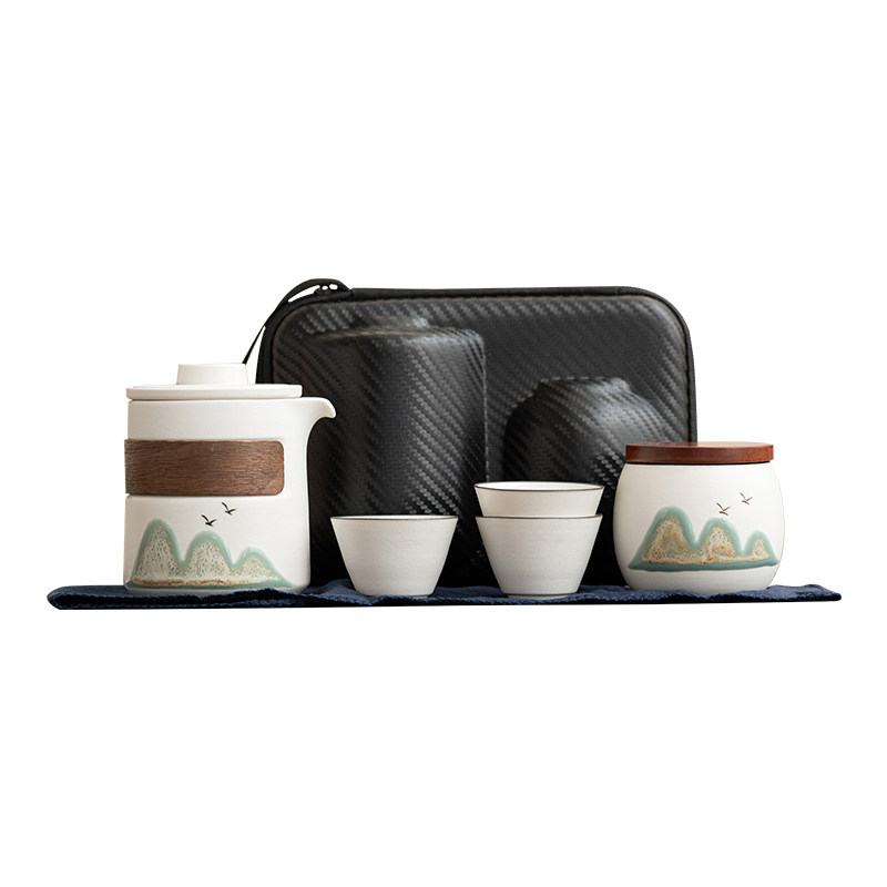 便携旅行装茶具陶瓷户外旅游快客杯一壶六杯泡茶壶茶叶罐套装定制