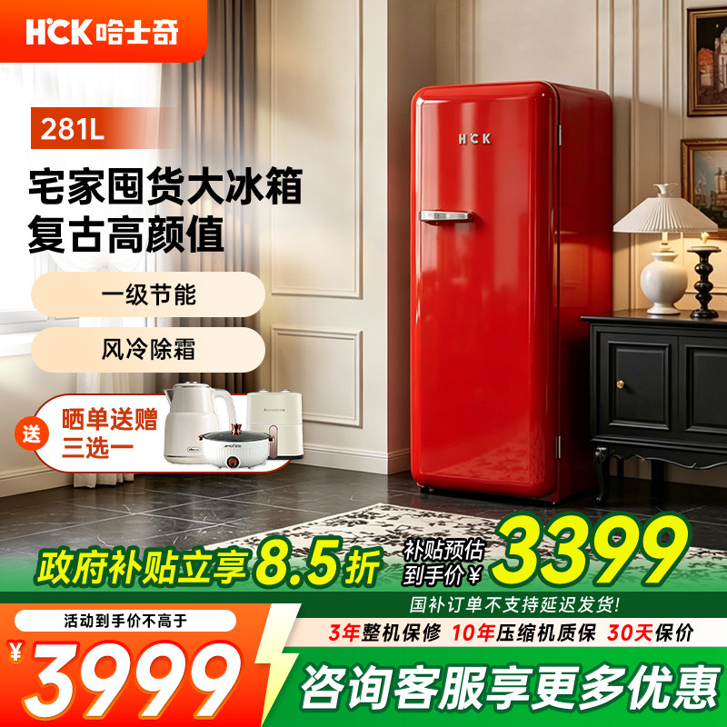 HCK哈士奇281L单门复古冰箱大吐司家用小型客厅茶叶饮料柜高颜值