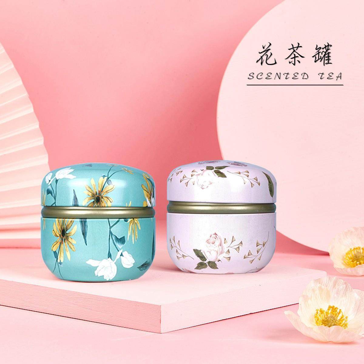 小号圆形茶叶罐喜糖金属花茶红茶品通用茶叶包装空盒现货马口铁罐