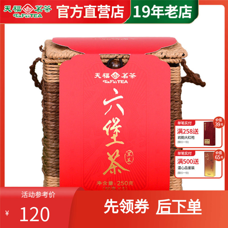 天福茗茶壮家六堡茶黑茶 广西梧州黑茶特产散茶箩筐装茶叶250g