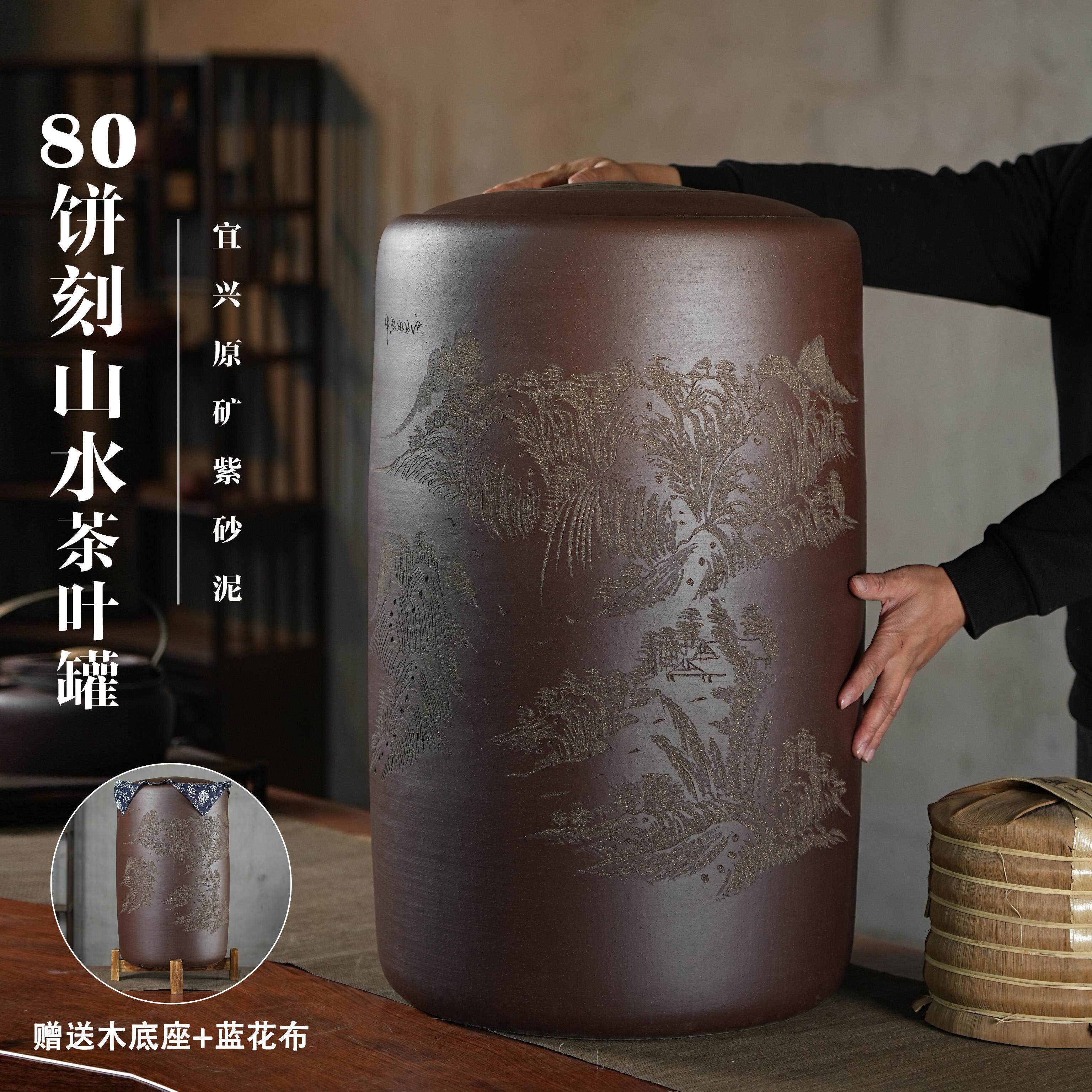 80饼宜兴紫砂茶叶罐特大号散茶饼茶储存罐家用防潮密封存茶缸复古