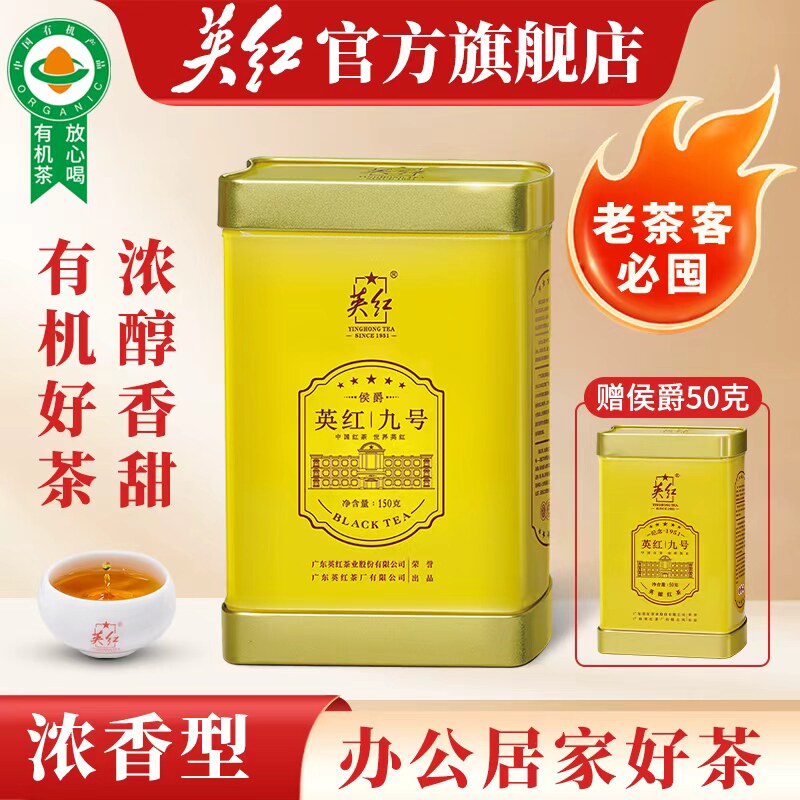 【英红牌】英德红茶英红九号秋茶有机茶浓香型红茶叶罐装节日送礼