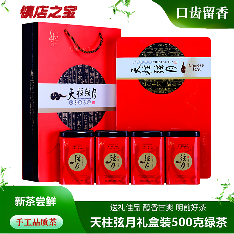 绿茶2026新茶天柱山弦月明前玄月礼盒装500g安徽安庆潜山炒青茶叶