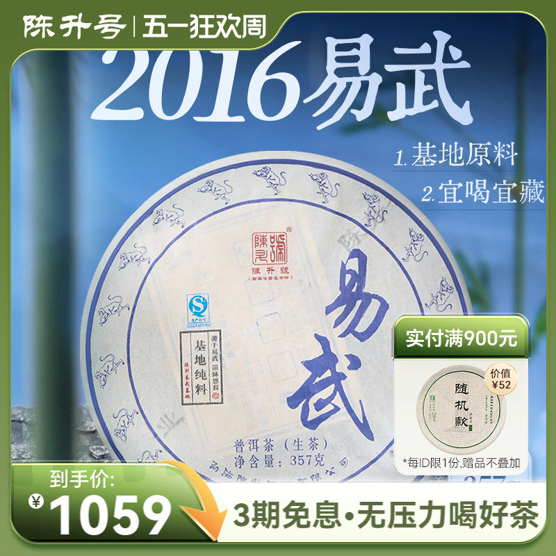 2016年陈升号易武基地普洱茶生茶茶饼357g云南七子饼普洱茶叶饼茶