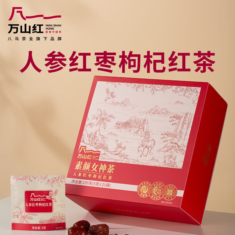 八马茶叶旗下素颜女神茶人参红枣枸杞黄芪玫瑰红茶组合茶叶 人参红枣枸杞红茶【105g*1盒】