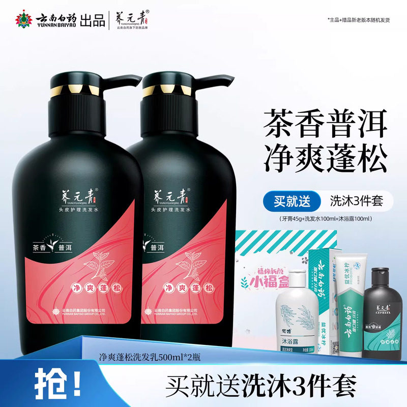 云南白药养元青洗发水净爽蓬松茶叶精华无硅油官方正品500ml*2