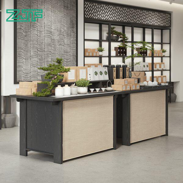 中岛台新派茶室流水台新式茶居茶叶展示柜中式货架商品陈列柜长桌
