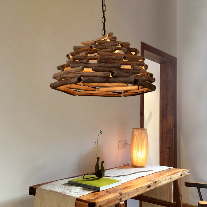 中式小吊灯实木树干日式复古灯禅意茶室民宿装饰样板房茶叶店灯饰