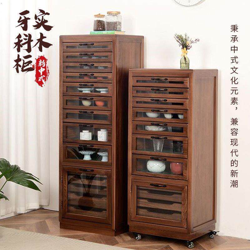 新中式茶叶实木牙科柜实木收纳柜柜首饰展示柜简约多层置物柜客厅