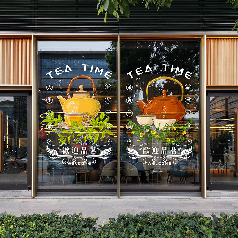 茶叶店橱窗贴画新茶海报广告茶楼茶馆下午茶中式茶道静电玻璃贴画
