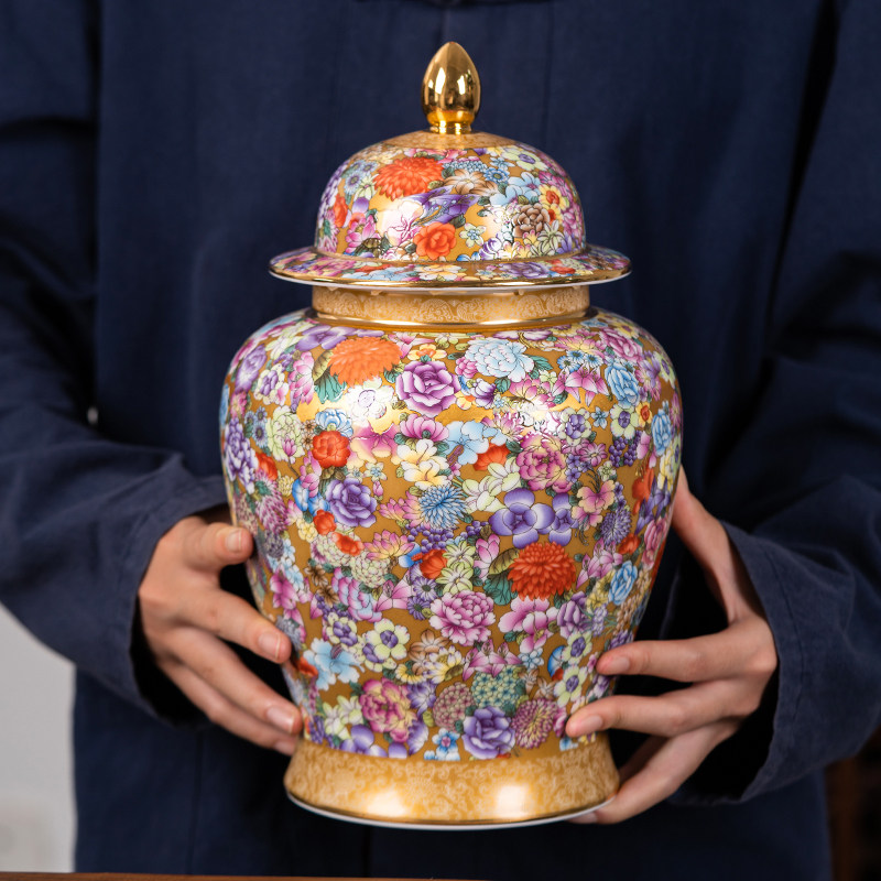 景德镇陶瓷茶叶罐防潮密封罐家用珐琅彩大容量储存罐高档将军罐