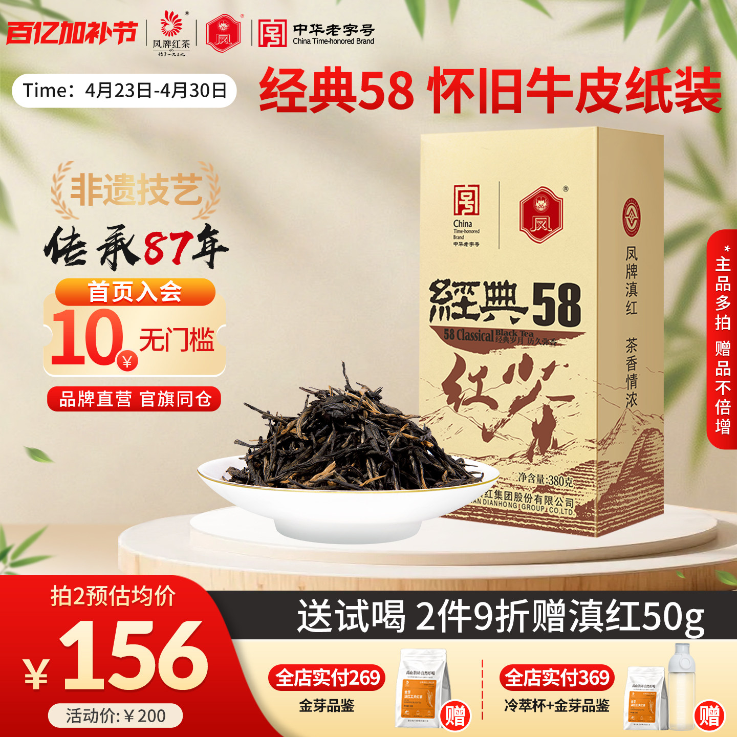 凤牌红茶经典58滇红特级正宗云南凤庆茶叶浓香型口粮茶散装380g