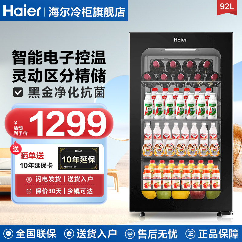 【新品】海尔92升时尚冰吧家用客厅茶叶柜饮料柜办公室冷藏小冰箱