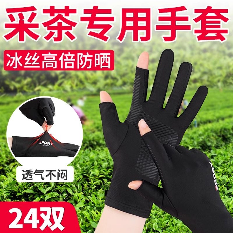 冰丝采茶专用手套薄款专业防晒防水女小号手指套摘茶叶露二指透气