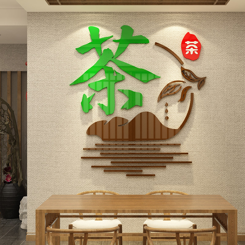 茶室氛围布置茶叶店道文化背景墙装饰画亚克力3d立体墙贴纸高级感