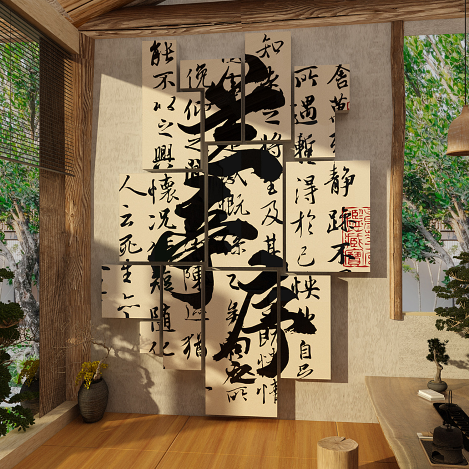 茶室氛围布置高级感网红茶叶店背景墙面装饰贴画民宿禅意古风文化