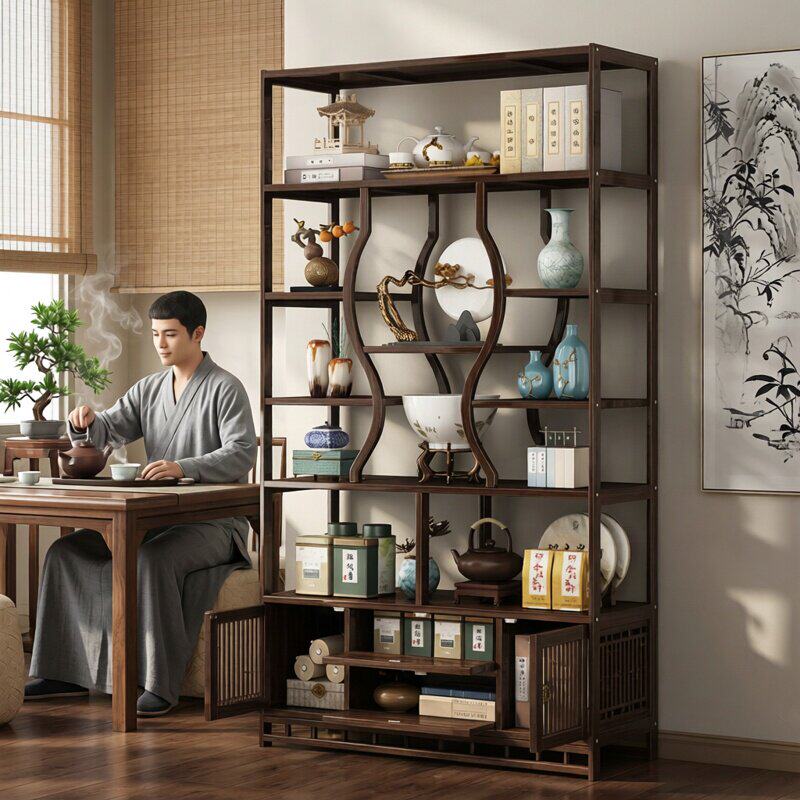 新中式博古架茶叶柜置物架茶具收纳架子展示柜客厅隔断摆件多宝阁