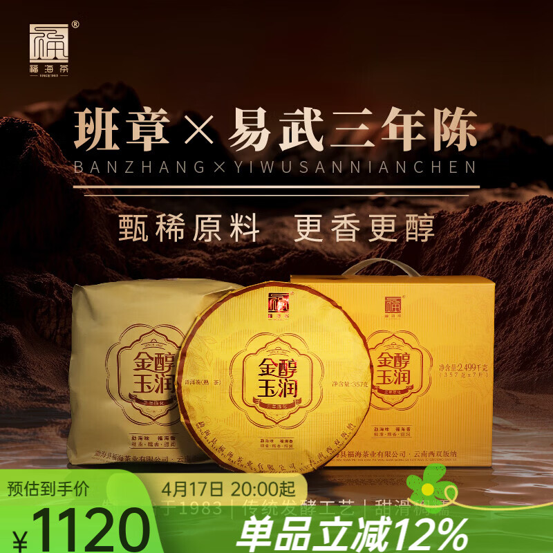 福海茶厂(FUHAITEAFACTORY)2025年新品金醇玉润班章易武3年陈甜糯熟茶云南勐海普洱茶送礼盒 整提(送1饼到手8饼)