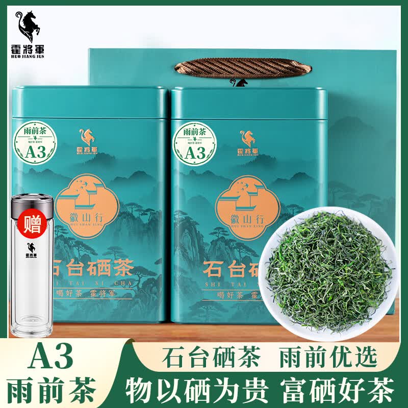 霍将军石台硒茶A1A3A5袋装2026新茶安徽云雾牯牛降炒青绿茶自己喝50克盒 A3雨前优选500克罐装【赠双层杯】