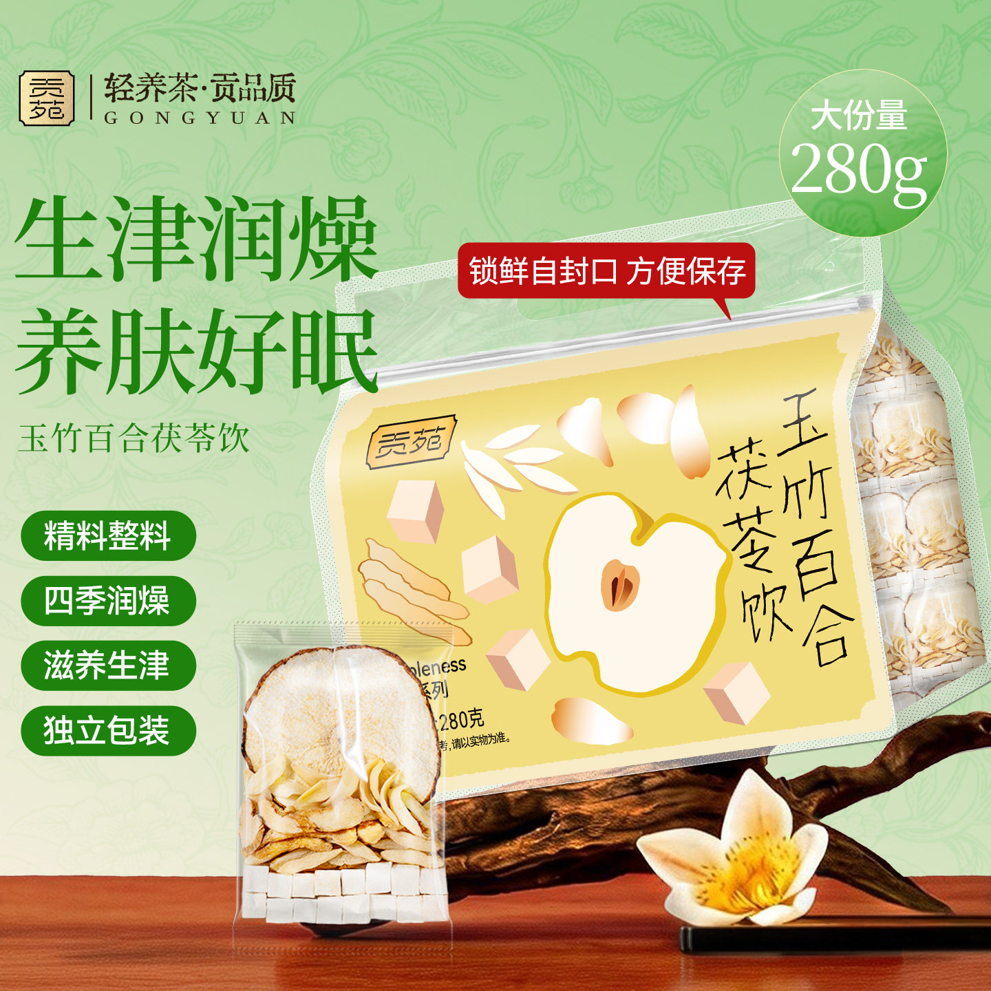 贡苑玉竹生津水麦冬百合茯苓雪梨润饮品生中药材包官方旗舰店正品