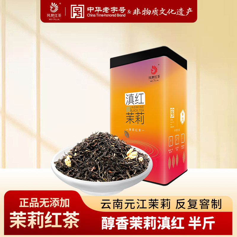 凤牌红茶云南茉莉红茶茶叶正宗滇红养胃茉莉花香浓香250g半斤送礼