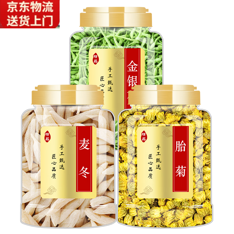 南京同仁堂金银花菊花麦冬正品官方组合中药材胎菊煮水区火泡茶泡水喝 [3大罐]金银花100g+胎菊100g+麦冬180