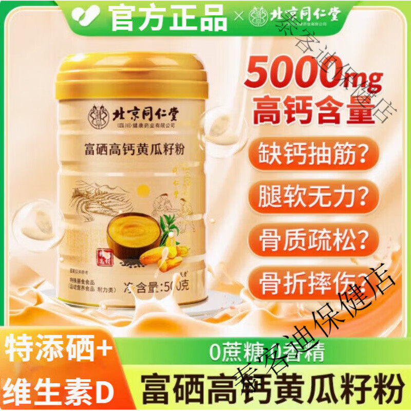 北京同仁堂富硒高钙黄瓜籽粉东北老黄瓜子熟粉补钙接壮骨专用中老年营养 3罐装[特添维D]富硒高钙黄瓜籽粉