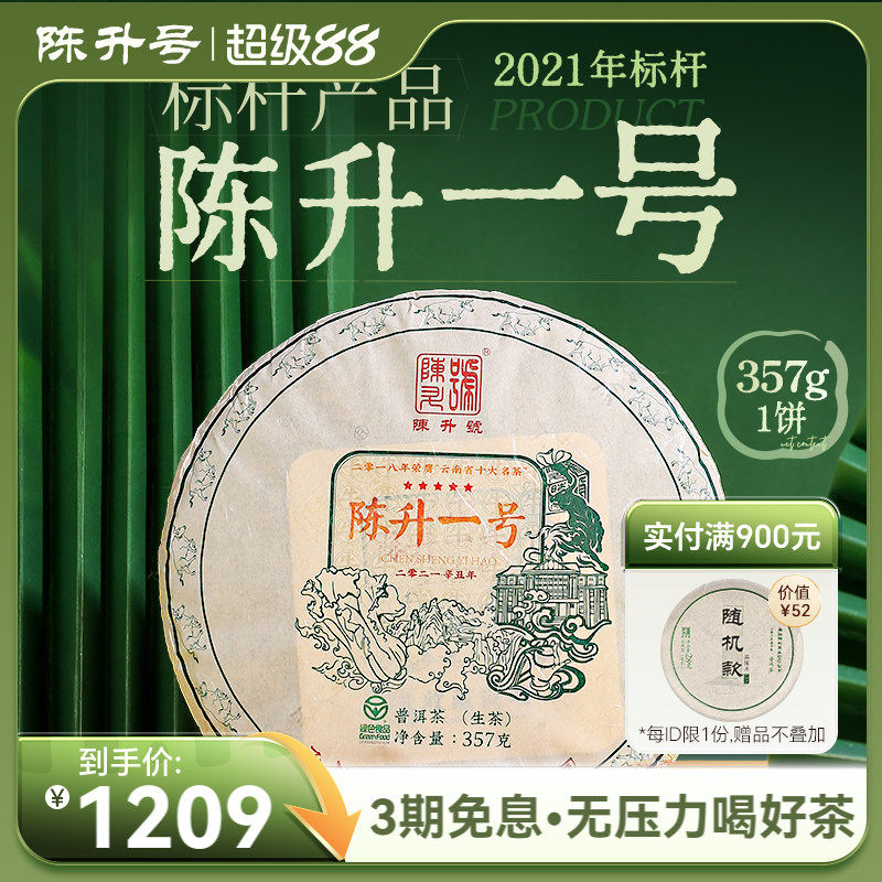 2021陈升号陈升一号357g普洱茶生茶饼云南勐海普洱茶饼生茶叶饼茶