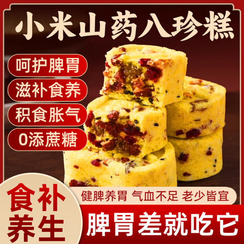 北京同仁堂正宗小米八珍糕茯苓红枣山药坚果李亚鹏无糖健调理脾胃糕点 小米山药八珍糕250g*3袋(30个左右
