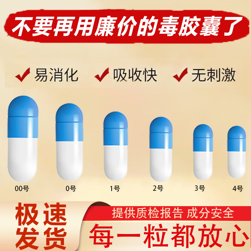 糯米胶囊壳食用装药器00号0号1号2号3号4号植物空心囊大小号胶囊 蓝白色 2号100粒合体【送勺+手套】