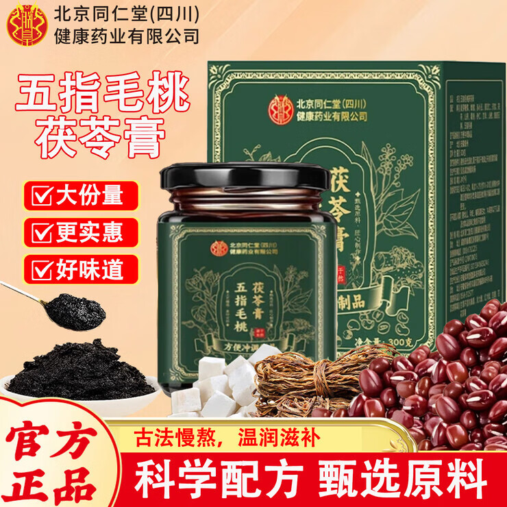 同仁堂茯苓膏五指毛桃伏湿膏滋补品央视祛湿膏推荐除湿气瘦肚子口臭推荐 【周期装】 300g*3瓶