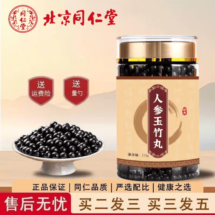 北京同仁堂原料人参玉竹丸浓缩丸加强大瓶汉方经典中草熬制药食同源 买2送1 瓶 三瓶装 250g*3瓶