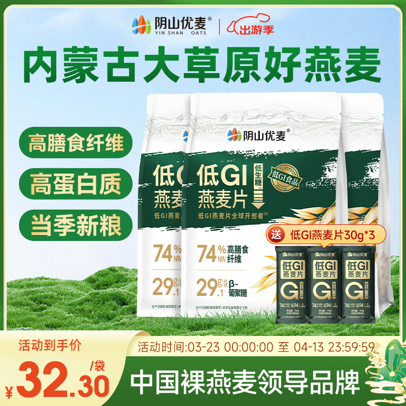 阴山优麦低GI燕麦片300克(内含10条)即食早餐营养麦片不添蔗糖饱腹代餐 【0添蔗糖】低GI燕麦片 420g*3