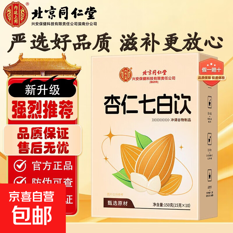 北京同仁堂杏仁七白饮美白粉营养早餐冲饮冲泡纯代餐粉正品原材料 杏仁七白饮 150g*3盒 【告别黄黑皮】