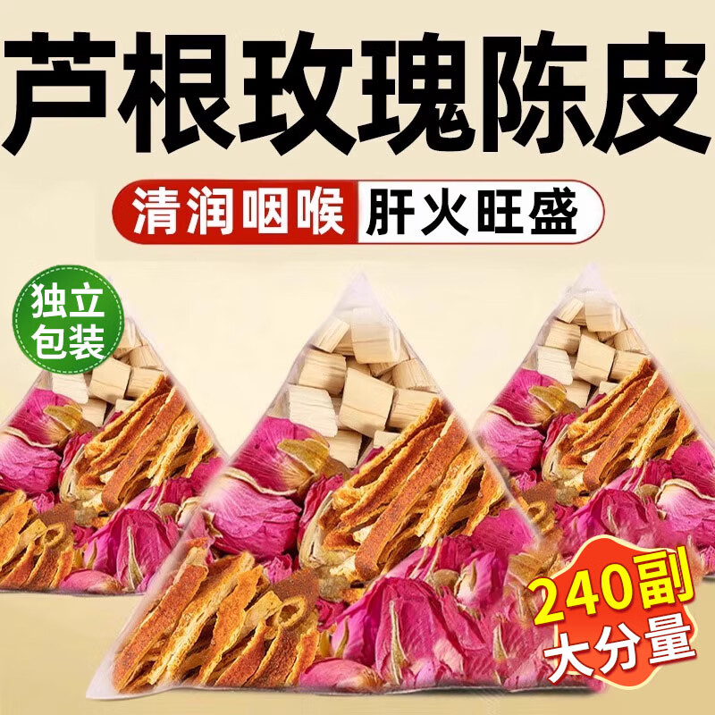 通用玫瑰花3g陈皮3g芦根3g茶中药材组合茶包痰气郁结喉咙痒干咳异物感 玫瑰花+陈皮+芦根*120副 5g*1包