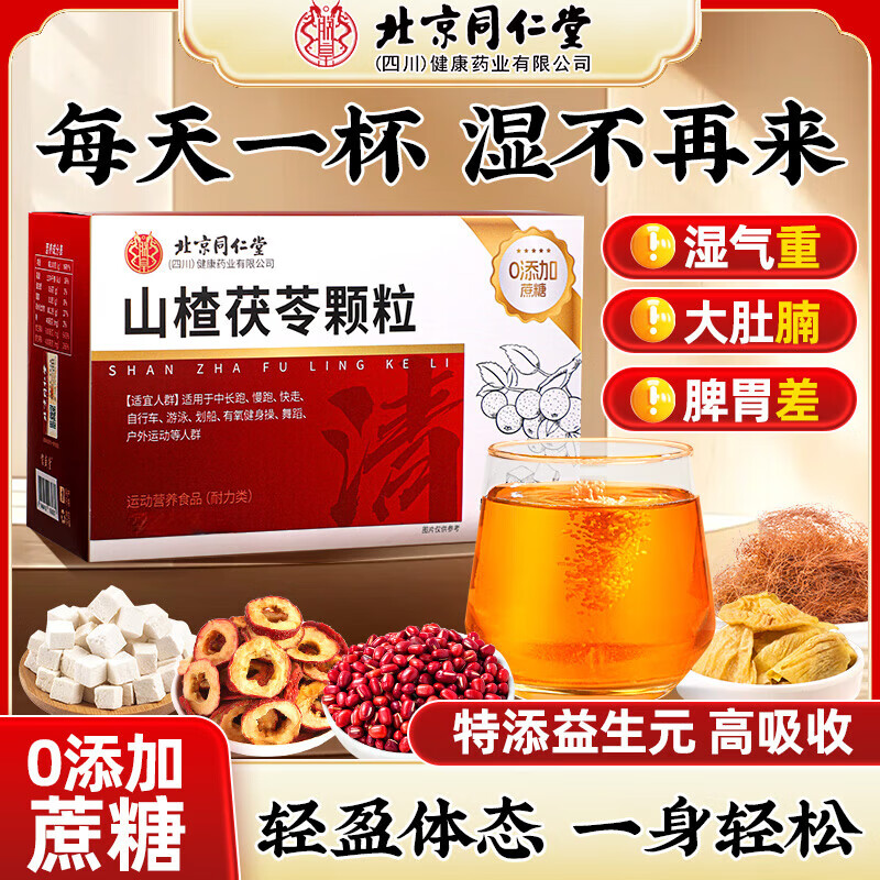 内廷上用北京同仁堂山楂茯苓颗粒0蔗糖牛脾肽山药健脾祛湿减肥排毒瘦肚子 【周期装】周期调理 150g*3盒 非云植otc祛湿气中成药减肥正品京官方店东自旗舰营