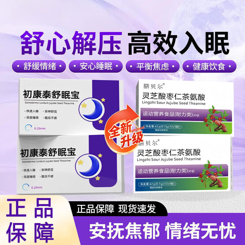 通用【初康泰舒眠宝】灵芝酸枣仁茶氨酸片舒缓情绪缓解焦虑舒缓解睡眠 3盒【周期装】 60片*3盒