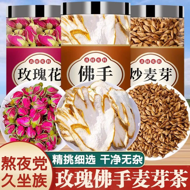 另善堂陈皮佛手麦芽茶中药材正品泡水喝煮水喝玫瑰佛手陈皮茶 【3罐】陈皮+佛手+玫瑰 3瓶*1罐