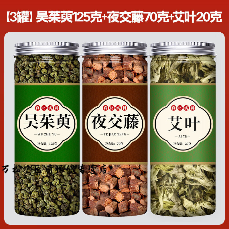南京同仁堂吴茱萸夜交藤艾叶干茶中药材正品官方纯正野生新鲜干草泡水 【3罐】吴茱萸+夜交藤+艾叶 3瓶*1组