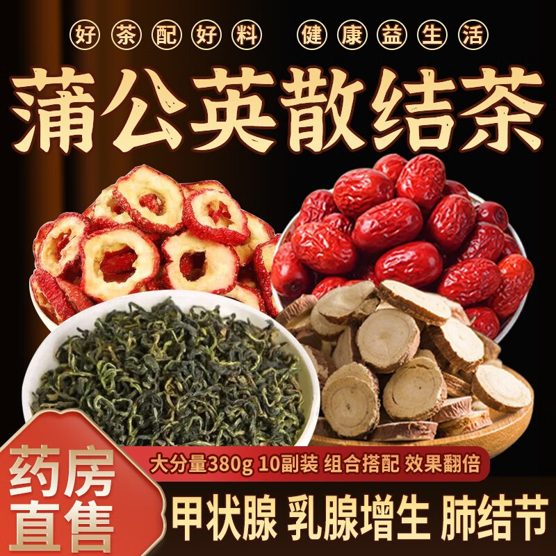 散结茶消除甲状腺乳腺肺结节茶蒲公英山楂红枣甘草疏1肝1理气解1郁中药材茶 疗程装38克*30副+3包夏枯草