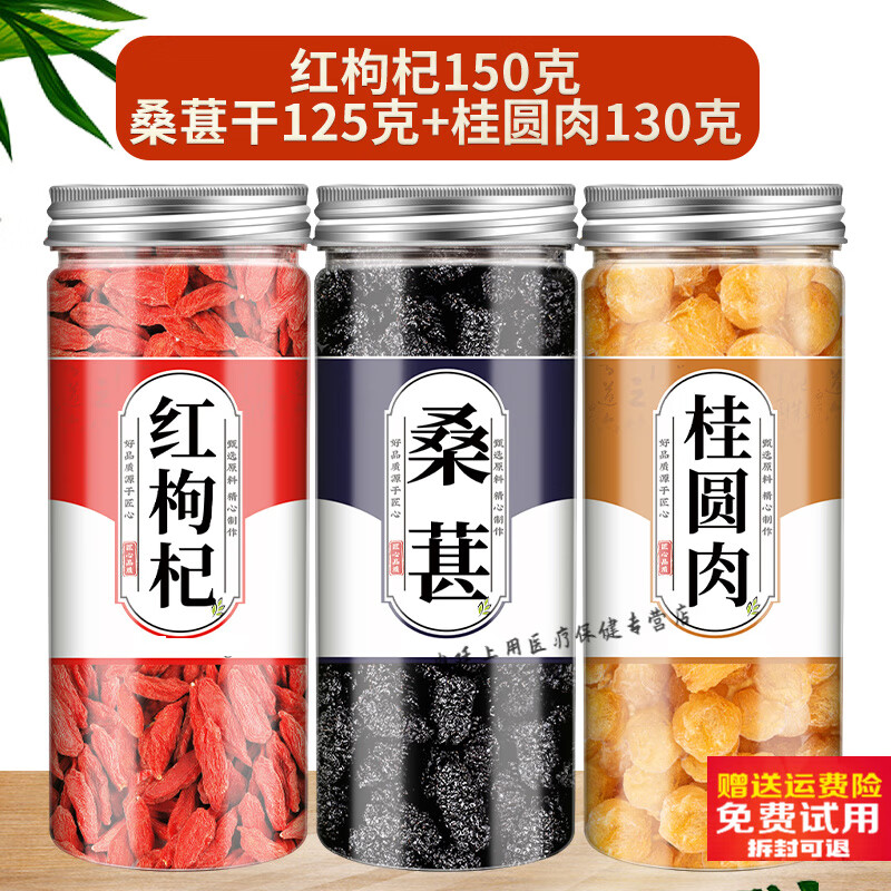 南京同仁堂原料桑葚枸杞桂圆茶红枣茶免洗组合茶泡水正宗宁夏枸杞子特级官方 [3罐]红枸杞桑葚干桂圆肉
