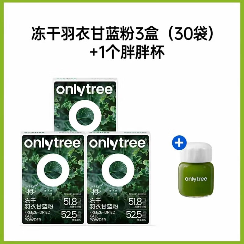 only tree羽衣甘蓝粉纯冻干青汁果蔬菜膳食纤维早餐冲饮代餐粉3g*10条/盒 3盒装+小肚杯