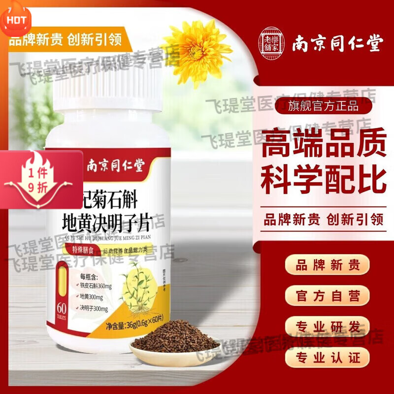 南京同仁堂杞菊石斛地黄决明子片南京同仁堂优质取材杞菊石斛地黄桑葚片 3瓶装【180粒】性价比高